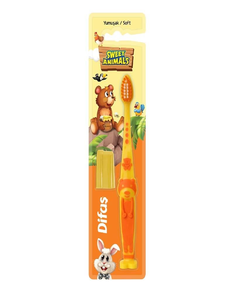 Çocukların diş bakımını keyifli hale getirin! Difaş Sweet Animals Yumuşak Diş Fırçası, sevimli hayvan figürleri ile tasarlanmıştır ve yumuşak kılları sayesinde çocukların hassas diş etlerini korur. Küçük ağızlar için ideal boyutuyla diş fırçalama alışkanlığını eğlenceli hale getirir.